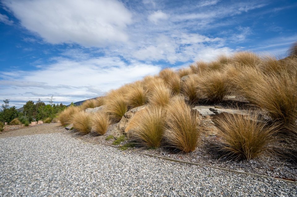 Ideal for naturalistic and contemporary gardens, Chionochloa rubra adds texture and movement, especially in windy, exposed locations. It works well in mass plantings or as a buffer plant around wetland areas, helping to reestablish wildlife habitats. This grass plays a vital ecological role by providing shelter and nesting sites for native birds, preventing erosion with its extensive root systems, and regulating water flow in alpine catchments by trapping and storing snow. Its drought tolerance and adaptability to poor soils make it particularly suited to coastal and urban gardens, where it offers both aesthetic beauty and ecological benefits.