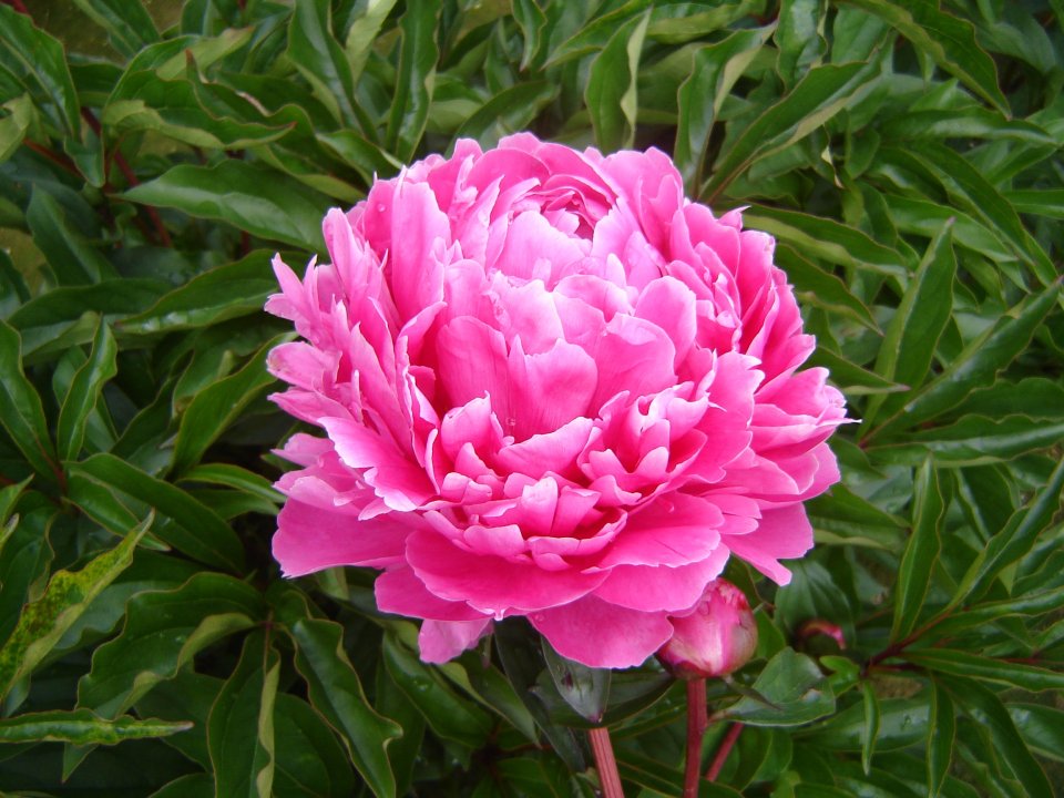 Peony 'Bunker Hill' is a striking heirloom variety with large, fully double, deep rose-pink flowers. The densely packed petals create a rich, ruffled effect, while a subtle fragrance adds to its charm. Flowering in late spring to early summer, this vigorous herbaceous peony is a reliable performer with strong stems that hold its impressive flowers upright. Lush, dark green foliage remains attractive throughout the growing season, making it a standout in garden beds and borders.